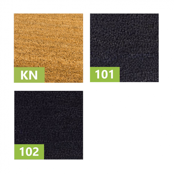 Paillasson 100 % en fibre de coco sur dos PVC d’environ 4 mm. Epaisseur: 20 mm. Couleur coco naturel. Poids: ± 6 kg / m².