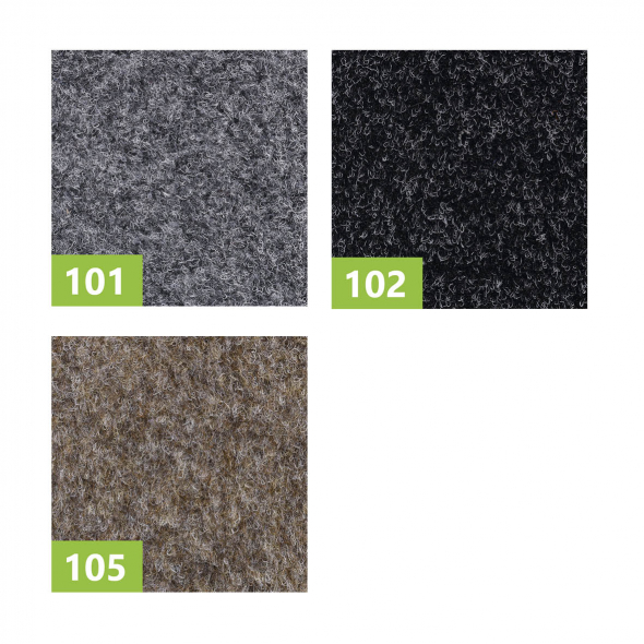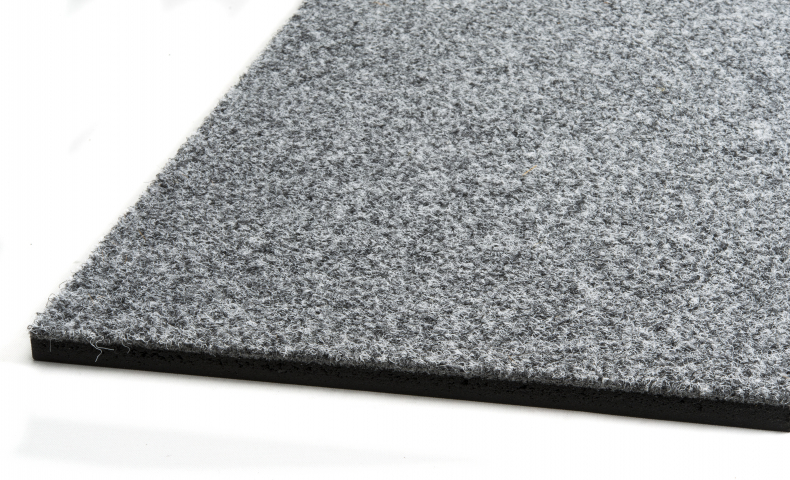 Paillasson polypropylène avec une surface unie, sur un dos en PVC. Epaisseur: environ 20 mm. Poids: ± 5,1 kg / m².